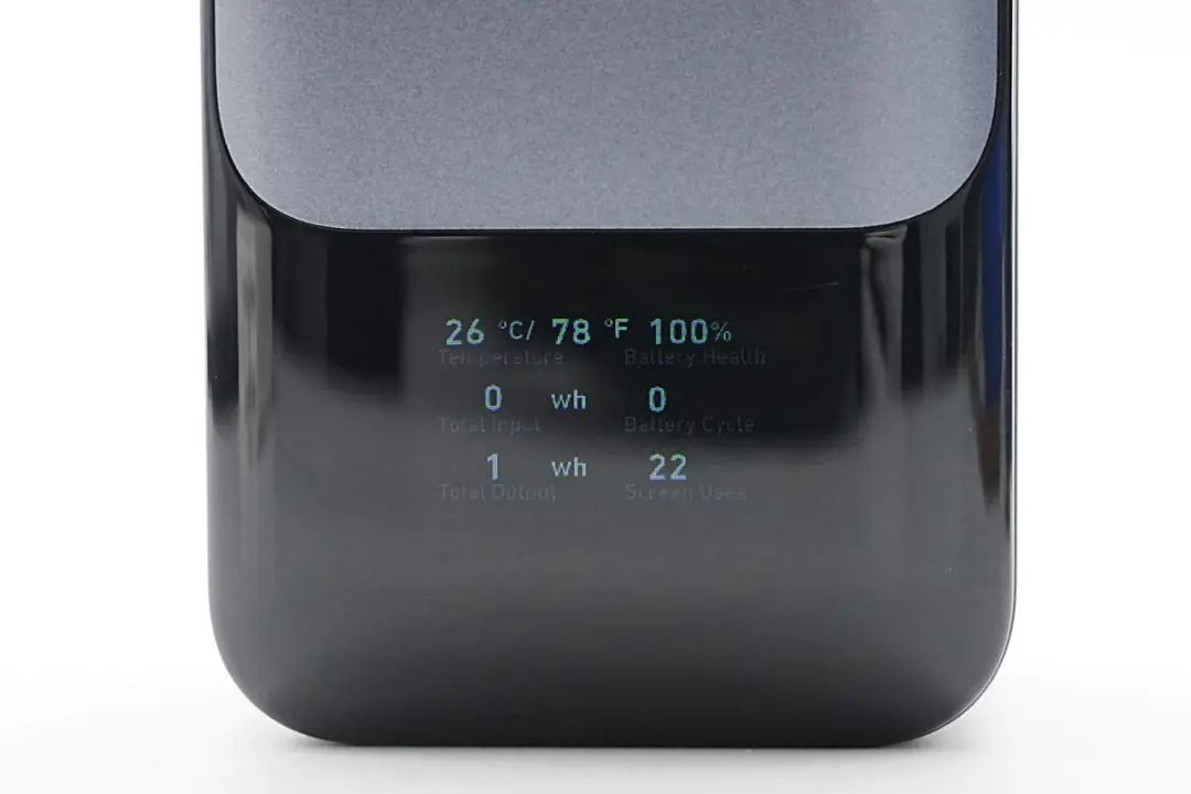 在電量顯示界面下,再次單擊按鍵可以顯示電池實(shí)時(shí)溫度、電池健康度、輸入/輸出能量、電池循環(huán)周期等豐富內(nèi)容,方便用戶隨時(shí)查看移動(dòng)電源使用情況。