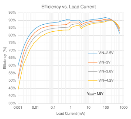 Figure 4.CW6602 Vout=1.8V的轉(zhuǎn)換效率