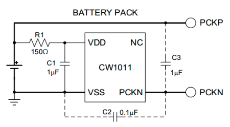 CW1011為單節(jié)鋰電池保護(hù)芯片,支持高精度過壓、欠壓、充電過流、放電過流和短路保護(hù)。芯片內(nèi)部集成了54mΩ導(dǎo)通電阻的Dual MOSFETs;其靜態(tài)工作電流為2.5μA,并支持休眠模式,功耗低至20nA。CW1011的封裝為DFN-6,尺寸為2.0mm*1.5mm。