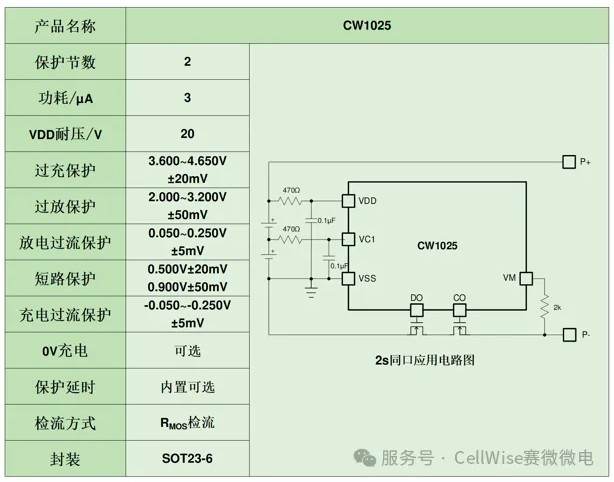 CW1025系列產(chǎn)品能兼容市面上同類型2節(jié)產(chǎn)品。